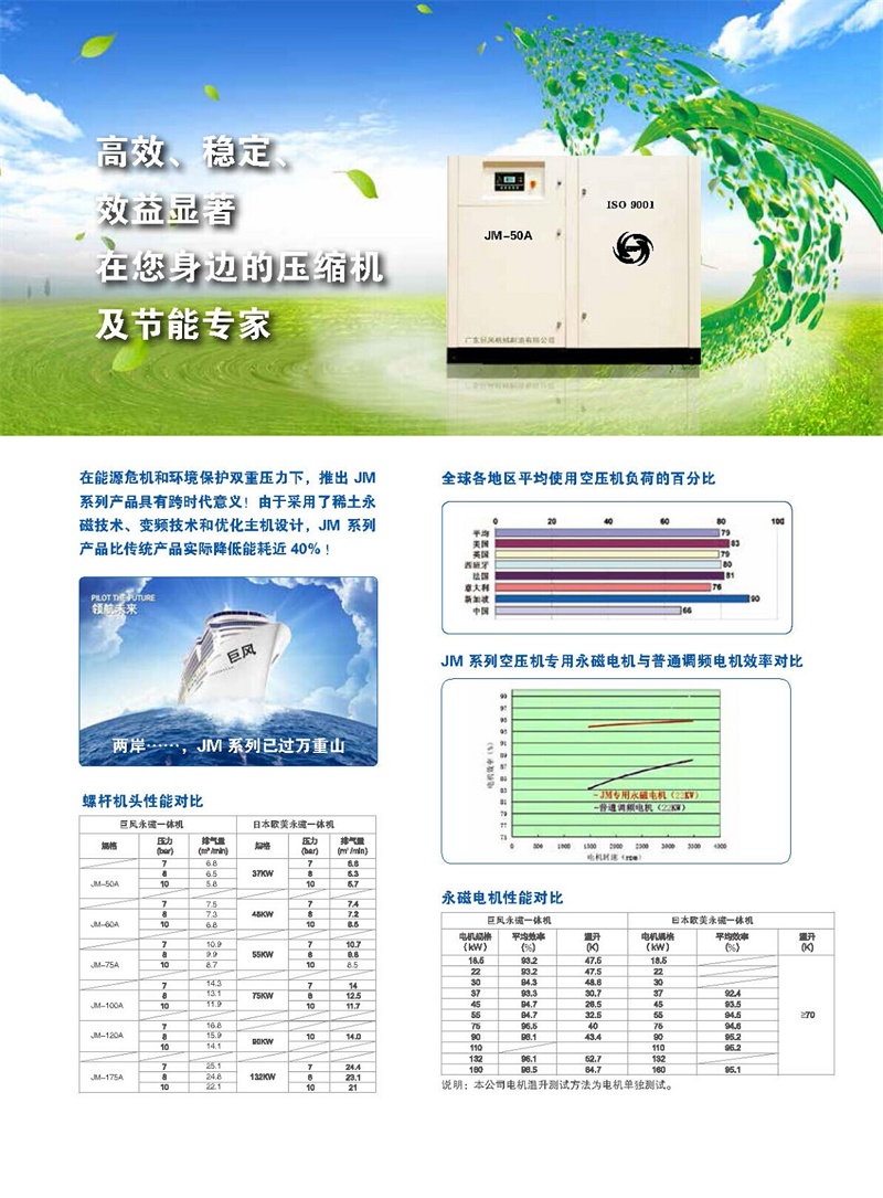 變頻和工頻的區(qū)別顯而易見,永磁變頻空壓機(jī)的節(jié)能優(yōu)勢(shì)和效率優(yōu)勢(shì)是取勝市場(chǎng)的必要手段。